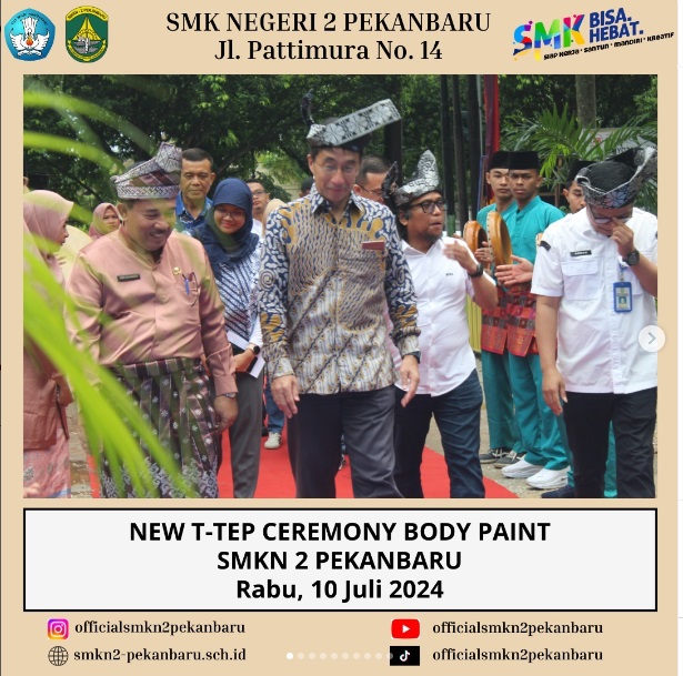 New T-TEP Ceremony Body Paint SMKN 2 Pekanbaru merupakan Acara Peresmian oleh Manajemen Toyota-Astra Motor, dihadiri oleh Mr. Takeshi Yamakawa (Finance Administration & Logistic Support Director), Bapak H.Peri Daswandi, S.Pd., M.Pd (Kepala SMKN 2 Pekanbaru) dan Bapak Dr. Arden Simeru, S.Pd., M.Kom (Kabid SMK) serta para jajaran Tim Toyota.